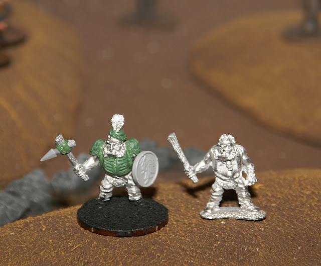 I always thought I suck at sculpting... Maybe I have improved my skills or it's again 15mm scale that is way more forgiving mistakes. I desperately wanted an ogre for my Empire warband. After some research it became clear that there is none on the market and a conversion would be necessary. I realized that I picked up six of the excellent ogre miniatures from Alternative Armies. I sacrificed a Demonworld chap for the feather and looked through my 28mm bitz finding an old shield fitting size-wise. The rest had to be done with green stuff. I am more than pleased with the final result and will certainly do another one in the near future. An ogre rarely comes alone and I have to other poses left to convert.